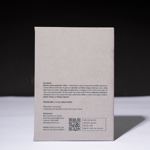 Mystery meets modernity in Pluto - a minimalist yet celestial composition that defies expectations. It opens with the herbaceous sharpness of lavender and bitter orange, delivering a crisp, cutting edge clarity. As it evolves, clary sage and mint sweep in, bringing an arctic freshness that evokes icy moons and uncharted worlds. The base settles into an ultra-modern blend of imbrued & ambrosian, cloaking the skin in a cool, musky veil of quiet sophistication. Pluto is a tribute to the power of stillness distant, daring, and deeply enigmatic.